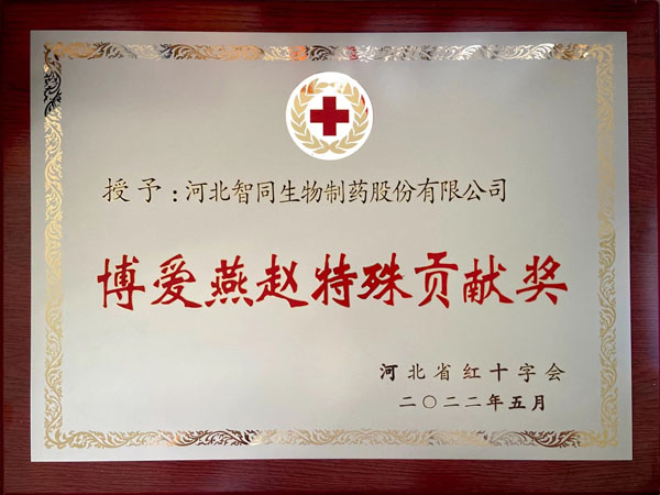 获得河北省红十字会“博爱燕赵特殊贡献奖”称号