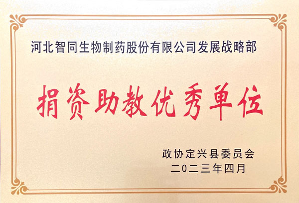 获得政协定兴县委员会“捐资助教优秀单位”称号